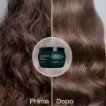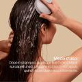 Dopo lo shampoo, applicare la maschera sui capelli umidi distribuendola sulle lunghezze e sulle punte. Lasciare agire 5–10 minuti, quindi risciacquare accuratamente con acqua tiepida.